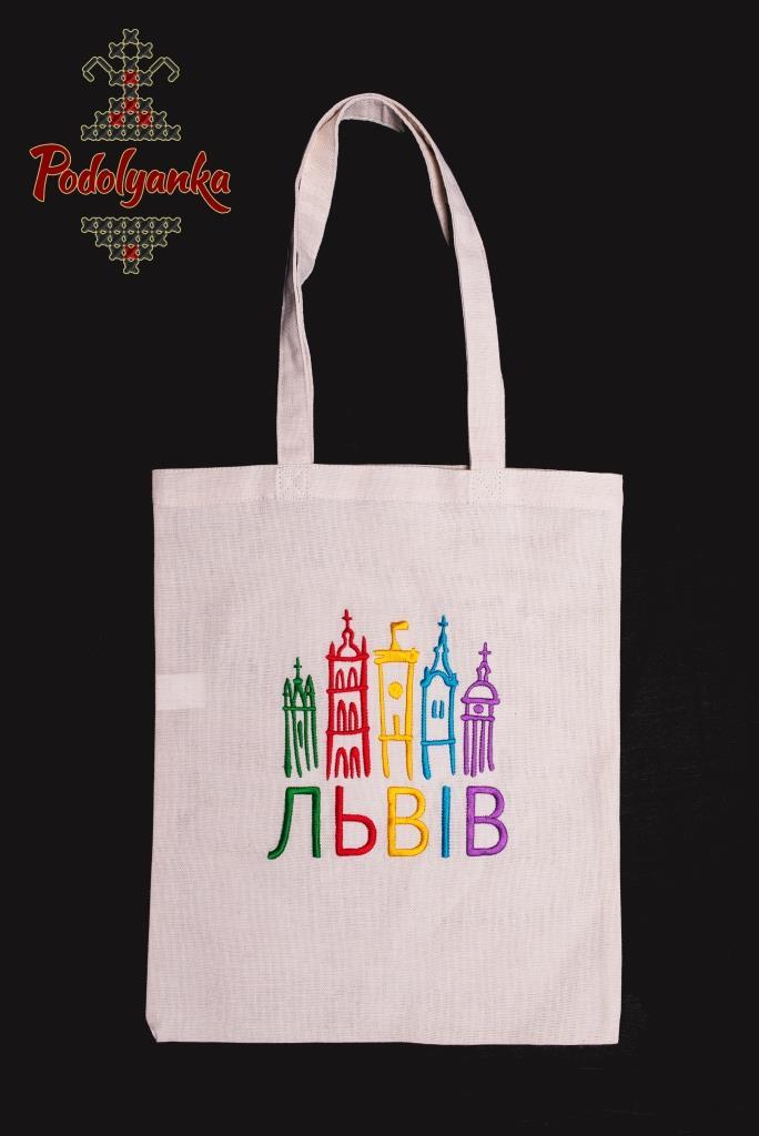 Еко-сумка з вишивкою Львів кольоровий. Вишивка машинна. Матеріал: бавовна, двунітка